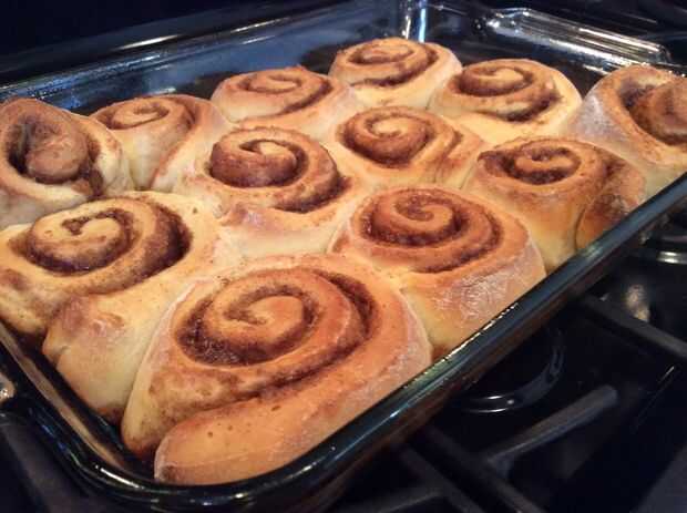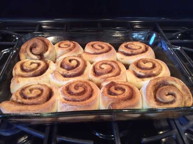 Rollos de hornear en horno durante 20 minutos, hasta que se doren, y está hirviendo la mezcla de azúcar en el medio. Sacar de horno. Cuando tibia y listo para servir, rociar queso crema glaseado sobre rollos individuales y servir.