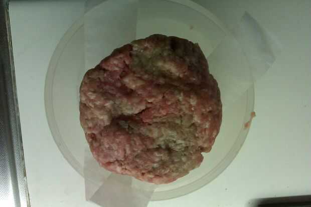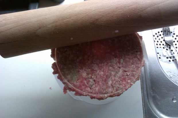 Poner una bola de carne molida en la parte superior. (En mi caso de 125g un cuarto libra era aceptable).