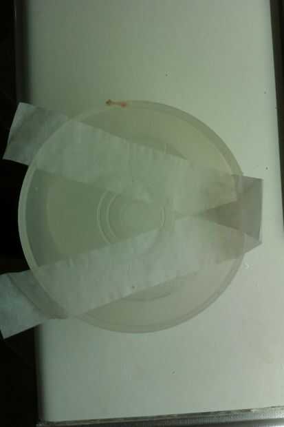Que lo cuelgue sobre el borde de la caja de torta de DVD.