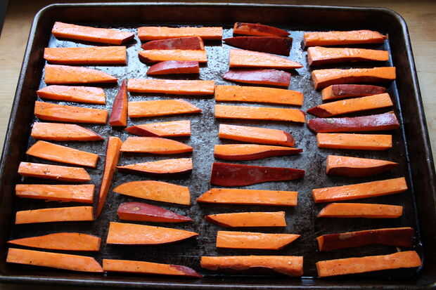Paso 4: Pon las patatas en la bandeja para hornear!