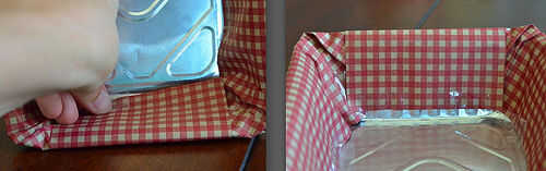 Que ahora hemos hecho todos nuestros cortes y están listos para envolver el cartón.  Comience con uno de los lados más largos primero, levante el papel de embalaje y pliegan en el interior del borde y cinta adhesiva. Asegúrese de que la cinta hacia abajo por lo que es plana y bastante. Trabajando de un lado a la vez, doble los extremos del papel sobre los bordes cortos y... seguro con cinta adhesiva. Repita para el otro lado largo... Y usted tendrá un cartón con la izquierda dos aletas en los extremos cortos.  Tomar cada aleta y plegar... y asegure con cinta. Este es nuestro cartón envuelta vacía.  Si has liado para arriba por ahora, tirar el papel y cortar una nueva para volver a comenzar.  No te rindas!  No pude hacerlo hasta mi segundo intento tampoco.