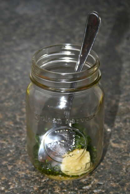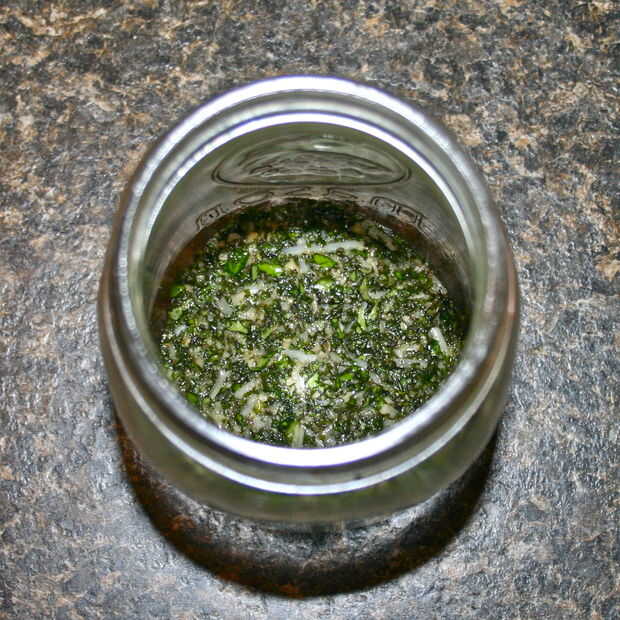 Pesto es el perfecto alimento verde.Servir sobre pasta, witheggs, con queso, galletas, pollo o pescado, en pasta o tortillas o con casi cualquier otra cosa que necesita sabor fantástico. Recientemente comí algunos corazones de alcachofa marinados que