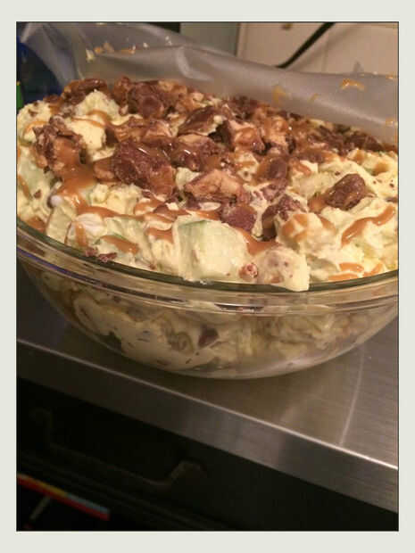nuestro postre de otoño por defecto es sólo acerca de lo mejor siempre y muerto fácil.Paso 1: Montaje de frutas Llene una cacerola de 9 x 13 con lo siguiente:arándanos 1 bolso, enjuagadas y recogidomanzanas, picadas, suficiente para llenar la bandeja