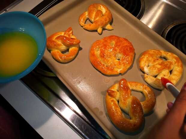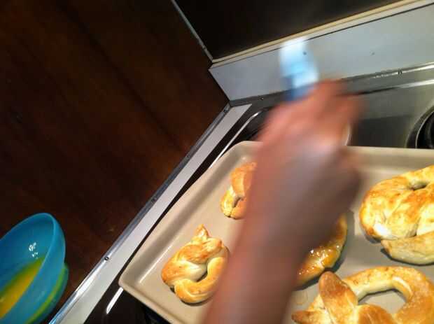 mi novia me trajo casa esta receta hace un tiempo y ella quería probar lo que es conmigo. Nuestro primer intento y estos pretzels salieron excelente, suave y masticable, pero salado. : PCon un poco de paciencia, usted puede hacer demasiado con poco t