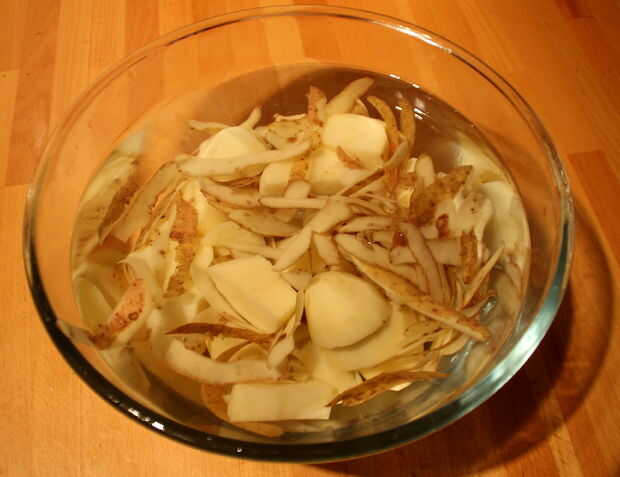 Retire los trozos de patata y dejar las pieles en el agua. Hervir hasta la patata como normal para hacer el puré. Use tanta agua como puedas como cualquier almidón residual será lejía en el agua. Si ves espuma blanca en la parte superior el agua cuando usted hervir las papas luego no saca tanto almidón como usted debe tener. Si esto sucede, que usted tiene varias opciones;