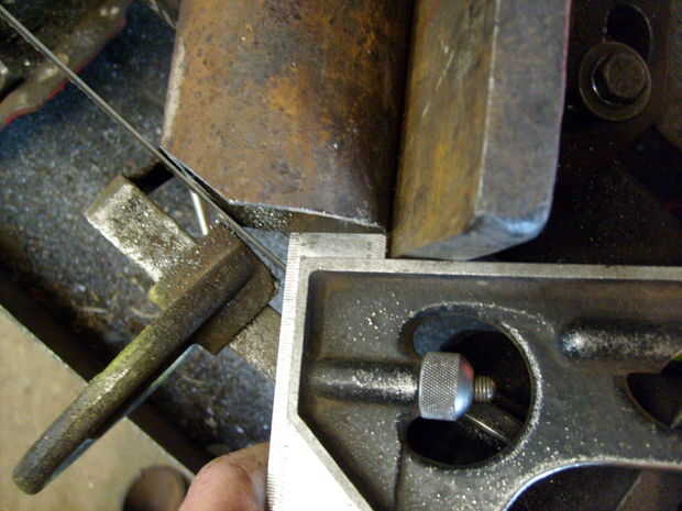 Obtener algunas tuberías de desecho y establecer la tubería en la sierra. Luego, ajustar la longitud a cortar. El corte no se realizará en el centro de la tubería, en este ejemplo, la hoja es aproximadamente 3/16 de pulgada del centro. Uno podría utilizar matemáticas para calcular el desplazamiento, pero no toma muchos cortes para comenzar a entender cómo cortando más o menos del tubo de la silla de montar. Pero por ahora, no te preocupes donde hacer el corte.