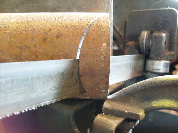 Una vez que el tubo firmemente en el torno de banco, utilizar una abrazadera en C como una parada. Cuando el tubo se gira la mitad de una rotación, la abrazadera se asegurará de que la misma longitud de corte se está realizando. En cada tronzadora que he utilizado, es imposible utilizar una abrazadera en C, por lo que utilizar una plaza de la corredera y mida desde el extremo de la mordaza. Sin embargo, cuando se gira el tubo, la Plaza será en el corte. Si la precisión no es necesaria, solo globo ocular en el extremo del tubo hasta el final del borde recto. O bien, poner un hierro de la correa por el extremo de la tubería. Un poco más complicado y desperdiciador de tiempo...