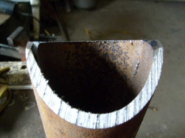 Si uno corta demasiado la tubería, (terminan con un trozo más grande) el resultado es un corte "puntiagudo". Este punto se golpeó el tubo que cargar y crear un vacío. Si no es demasiado malo, un rápido retoque con una amoladora la corregirá.
