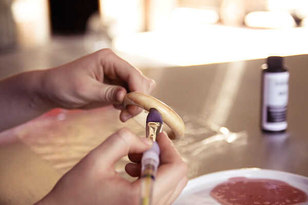 Cubrir el brazalete todo con inkodye para una sombra incluso agradable. También hemos pintado el interior para mantener las cosas fácil.