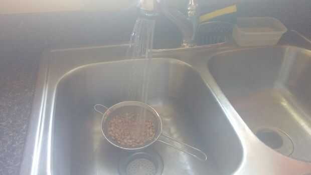 Paso 2: Poner en un colador del tamiz y lavar en el fregadero hasta que el agua salga limpia.