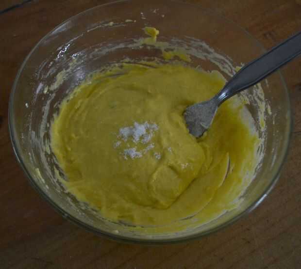 Añadir la harina poco a poco, no como en la foto :) y una pizca de sal y mezclar hasta que super suave.