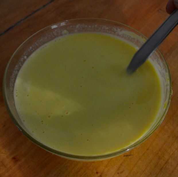 Añadir la leche poco a poco, no como en la foto :) y mezclar hasta que quede bien mezclado.