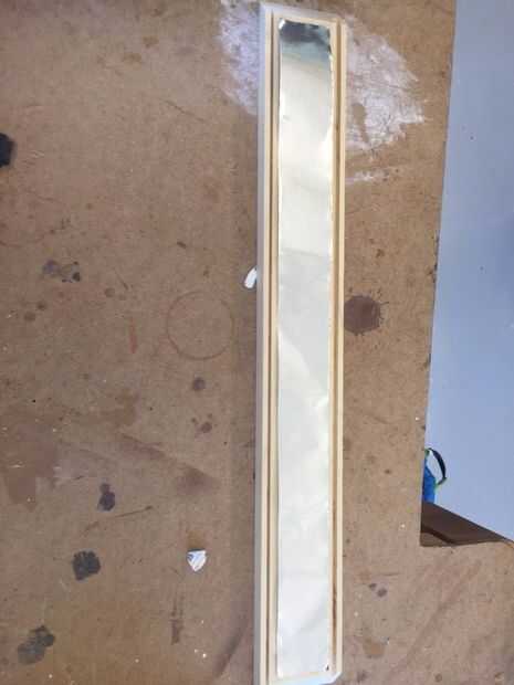 Repita el proceso anterior para un lado de la madera contrachapada del forro, dejando un borde de madera contrachapada de ¼" todo el perímetro de la Junta. Esto es para permitir que el tablero encajar en las ranuras del dado. Asegúrese de que a la línea de que las piezas de aluminio cinta así que hay poca o ninguna diferencia.