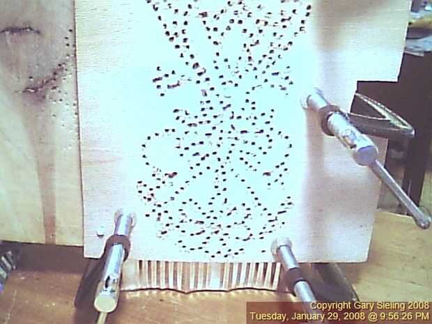 La plantilla ayuda a ocuparse de la corrugación - sin ella que no se tiene control donde van los agujeros, como terminan en los valles. La plantilla también evita el martilleo de los pulgares:).