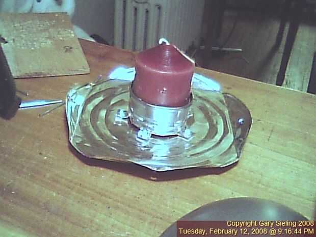 Para hacer el candelabro, medir una pieza de metal lo suficiente para envolver alrededor de la vela. Necesita cierta holgura, porque el remache atiza dentro y toma algo de espacio.
