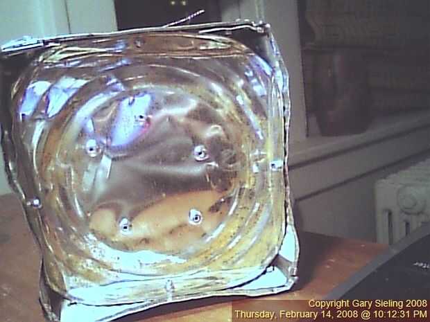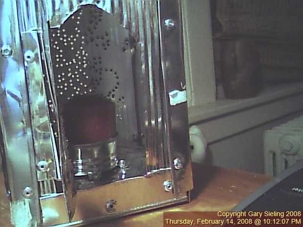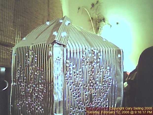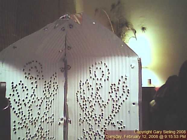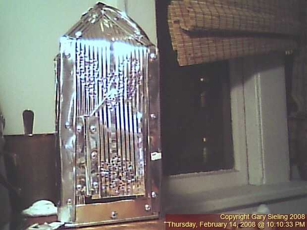 Poner los agujeros en los paneles laterales y la pieza de Unión. Hacer un agujero a la vez, porque el metal no es plano para comenzar con, no merece la pena intentar medir los agujeros a la vez. Como conecta la L en forma de pieza, los paneles laterales se enderezan. Una vez todo junto, nunca sabes que empezaste con una hoja de metal con grumos.