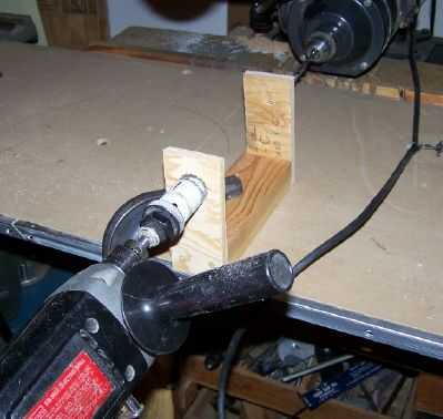 Eje de la sierra gira a unas 3.000 rpm.  Es demasiado rápido para mi agujero VI.  Usé el agujero piloto al centro de que la sierra montado en mi taladro eléctrico.
