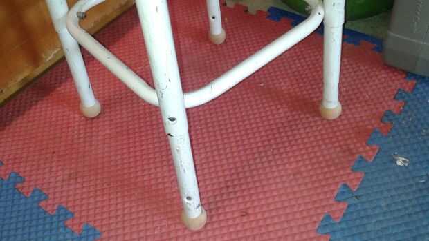 Necesitaba unos nuevos pies en mi taburete de la tienda porque era agujeros de corte en mi estera de goma. Tengo perforado e instalado cuatro bolas nuevas en mi taburete y ahora no perfora agujeros en mi alfombra. Espero que el "Instructable" le ayudará en situaciones similares. Sé que hay muchas otras maneras de hacer este proyecto pero esto es lo que me ocurrió con este tiempo y era rápido y fácil.