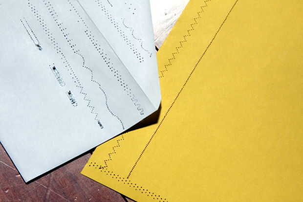 Sólo establecer su máquina en una de las puntadas fantasiosos preestablecidas y enviar su trabajo a través de! Hacer algunas pruebas primero en papel de desecho porque, como se puede ver en la envolvente del cuadro, algunos puntos están demasiado juntos y rasgan el papel.
