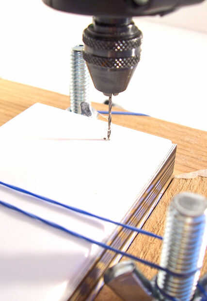 3) cuenta que muchas tarjetas y poner entre la plantilla y la perforación sujeto.