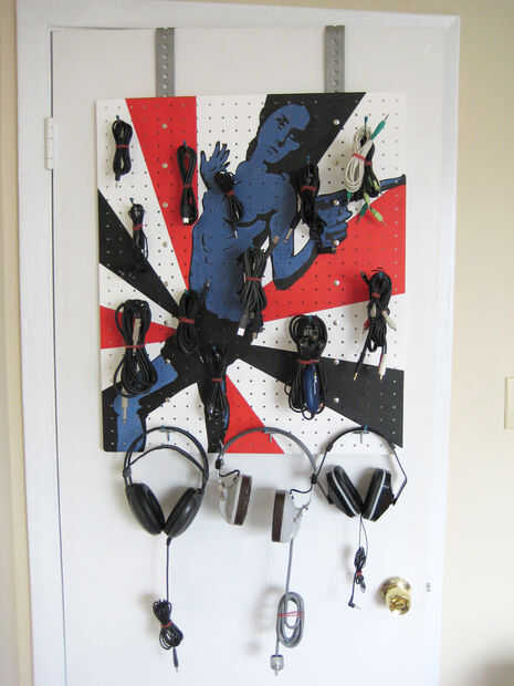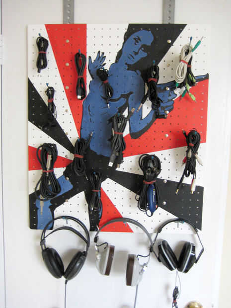he querido poner un pegboard detrás de la puerta de mi estudio para sostener los cables de audio y auriculares, pero no quería se mira una hoja fea de pegboard todo el tiempo. ¿Qué es un niño que hacer? Bueno, este muchacho fue a continuación y láser corte su pegboard de acrílico y pintada en un gráfico realmente impresionante. Esto hace que lo más conveniente colgar en mi pared. ¿Por qué conformarse con sólo un pegboard cuando también puede tener una obra de arte?