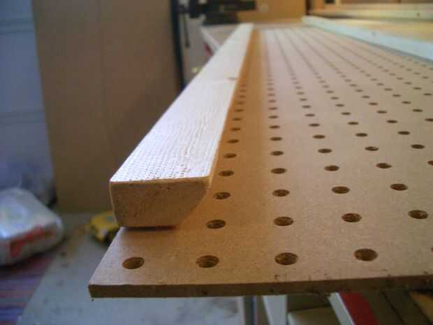 No tengo un router o Hanon, así que no pude configurar mi material perforado en un corte de ranura abajo la mitad de 1 x 1 o 1 x 2 y no perder * cualquier * agujeros. Y ya que estaba usando 1 "x 2" estructura estaba preocupado que si montara mi material perforado en sólo 1" de la cara 2", perdería una fila extra de los agujeros de la peg en los cuatro bordes de la board.