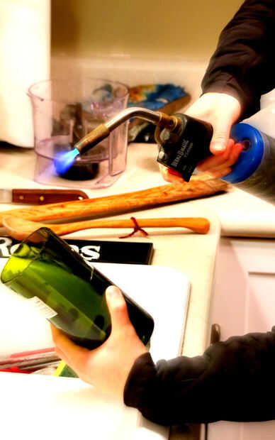 Una vez que la botella se anotó, usted querrá preparar un baño de hielo y luego proceder a la línea de calor. El baño debe hacerse antes de calentar porque la botella tendrá que ser sumergidas inmediatamente. El calentamiento puede hacerse con un soplete o mechero (los partidos no se recomienda). Tratar de calentar la línea tan uniformemente como sea posible y asegúrese de calentar toda la línea de puntuación antes de sumergirse.