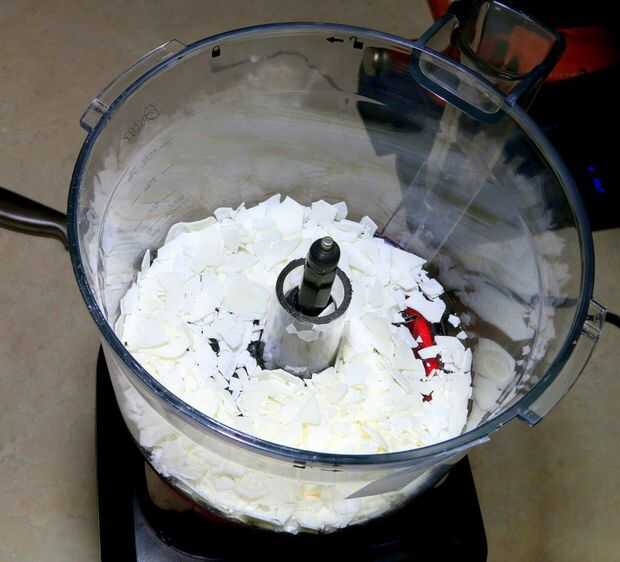 Para hacer fusión más fácil y más consistente, puede utilizar un procesador de alimentos, rallador de mano o cuchillo para destrozar la cera en pedazos más pequeños. Probar y obtener piezas de tamaño similar para la fusión uniforme.