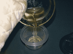 La cera se derretirá gradualmente; cuando es 100% líquido, retirar del fuego y agregue los demás ingredientes con una pajita (la cera comenzará a formar sólidas en todo lo que hagas tu Revolver con — una paja tiene poca superficie así que pierdes menos del producto final, y es desechable para que no tenga que limpiar apagado). Cuando todo está bien mezclado, verter la cera líquida inmediatamente en su contenedor final. En unos 30 minutos, será frío, sólido y listo para usar.