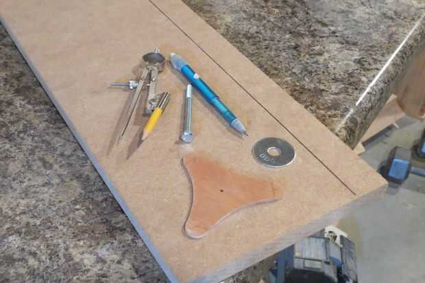Los materiales que usted necesita para realizar este control son bastante comunes. He utilizado 3/4. Perno de MDF, una arandela grande y un 5/16 por 3" de largo por la mitad. Realmente puede usar cualquier madera que está disponible para usted. Para las herramientas, usé mi poco Sierra de cinta, lijadora de disco, fresadora y taladro. Realmente, usted podría conseguir lejos con una sierra de calar y un papel de lija.