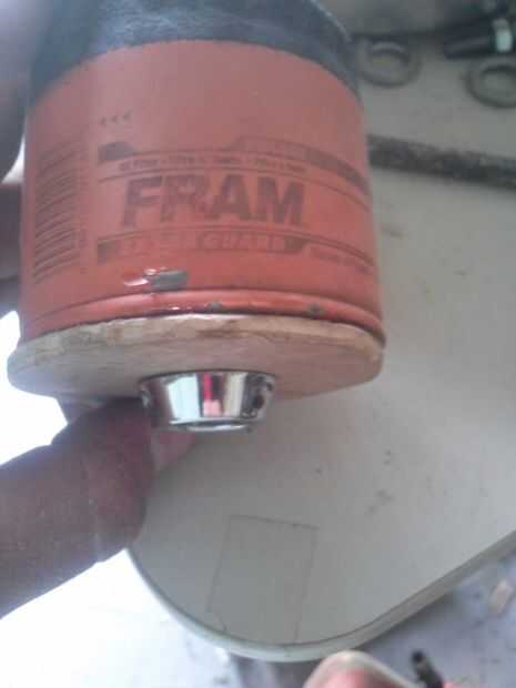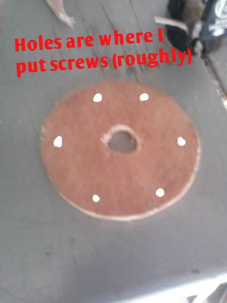 Palo metálico lo en el agujero y el lugar madera sobre base de filtro de aceite. Montar disco madera en filtro con pegamento, tornillos o cualquier cosa que desee utilizar. He usado self tapping tornillos (no se muestra lo siento) para montar juntos. Tuve que taladrar orificios para los tornillos para sostener el filtro.