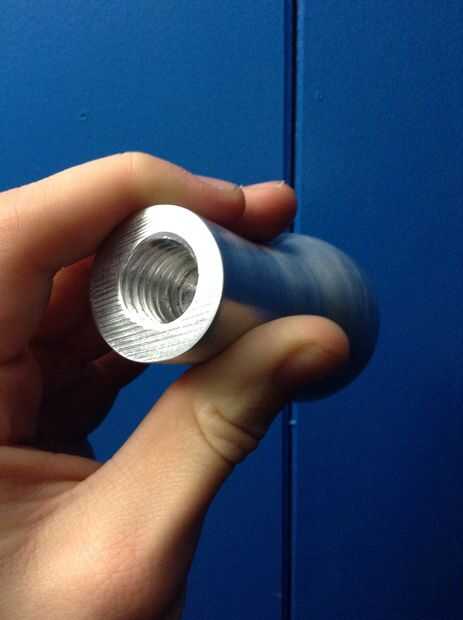 Si no planea threading y sólo quieres pop en, que está muy bien! Omita este paso. Usar su grifo de tamaño adecuado al hilo por primera puesta tu mando en una abrazadera. Me pareció más fácil hacerlo de esta manera. Sin embargo, para evitar hacer marcas en el exterior de su proyecto de envuelven en un guante de cuero antes de apretar la pinza en él. Esto le ahorrará un montón de lijado y el tamaño de su mando. Girar el grifo en una media vuelta después de que usted sienta resistencia, luego retroceda hasta que se suelta y repita hasta que haya terminado. Hacer lo mismo con la matriz de su memoria real si ya no es roscado.