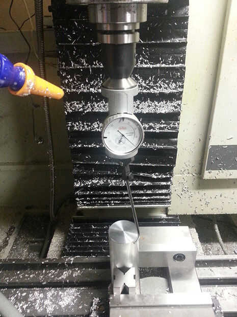 Si utiliza el indicador coaxial, esto es manera más simple! Cuando la aguja no se mueve demasiado, allí estás tú. A qué distancia desea estar depende de cuánto espacio le queda. Para este control particular, mi acción es 1,625". Hice el diámetro exterior de la perilla 1,55" que me da +-0,0375" valor de offset. Para cualquiera de estos métodos centradoras, una habitación principal es gigantesca! (Soy generalmente apagado por 2 o 3 miles de pulgada).