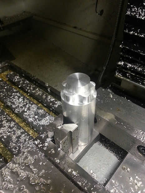 Ahora estamos listos para alguna experiencia knobbing. Ejecutar su trabajo y usted debería ver su perilla se extrae de la culata de aluminio embragues. Como muchos maquinistas dicen: "hay una perilla atrapada dentro de esta pieza de aluminio!" Regocíjense en el hecho de usted es el héroe de la película y ha guardado esta damisela en apuros. No se casan con el mando, sin embargo, como esto generalmente está mal visto...