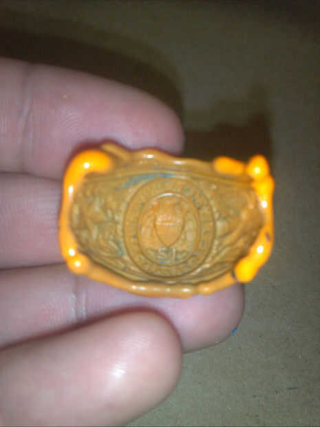 Paso dos, se va a crear una impresión de la plantilla. Si tu plantilla no tiene mucho detalle se puede alginato; sin embargo, si la plantilla tiene un montón de detalles finos, es mejor utilizar un material de siloxano de polivinilo (PVS). Utilicé "Aquasil Dentsply de luz cuerpo PVS" pero hará cualquier material PVS. Dato curioso: esta es realmente la misma materia que el dentista utiliza para tomar impresiones de los dientes. El material viene con una "pistola" y solo squirt el material sobre la plantilla. Asegúrese de que la punta de la pistola de impresión en el material de impresión que están cubriendo la superficie de la plantilla para evitar burbujas de aire. Después de haber cubierto la superficie de la plantilla, retire la pistola de impresión y deje que el material seco (esto generalmente toma de 5-7 minutos).