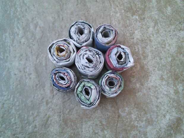 Hacer algunos pequeños rodillos para pegarlas a los lados de rodillos grandes, de modo que formen un círculo.