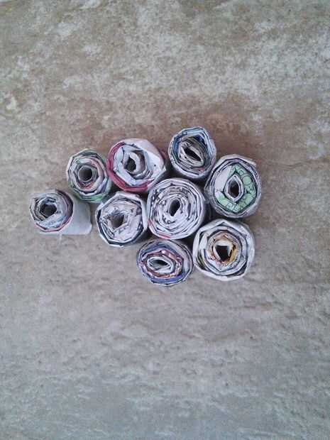 Mezcla pegamento con agua, aplicar a la parte superior de los rollos. Este procedimiento ayuda a mantener la forma.