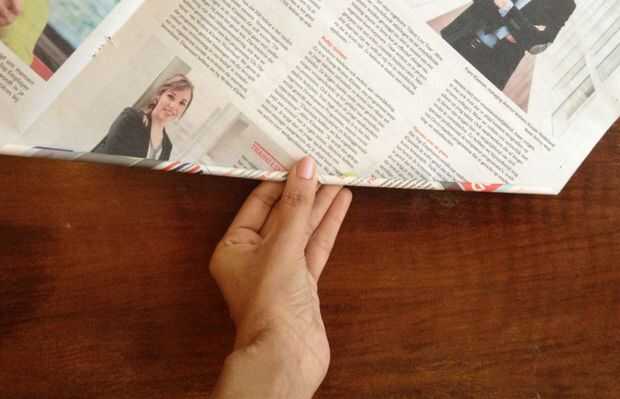 Como se muestra en las fotos de arriba, empezar con tomar una página de un periódico del centro.