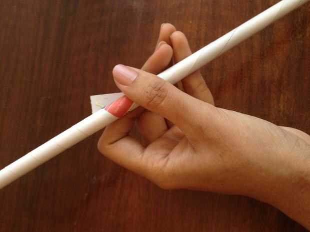 Medio camino, aplique una gota de pegamento en el papel, continuar rodando sobre el pegamento.