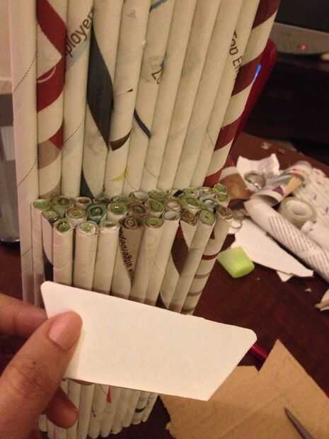A continuación, tome la pieza de cartulina y pegar en la parte superior de los tubos de pequeño. Presione y mantenga por un 1-2 minutos al enlace seguro.