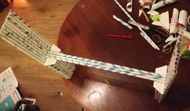 Cuando se ha secado completamente, tome 2 tubos largos más y pegar de la misma manera en ambos lados del tubo central. Aplicar el pegamento en los extremos callejeros de todos los tubos centrales 3.
