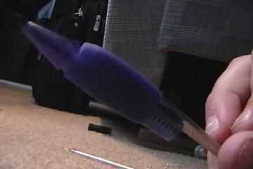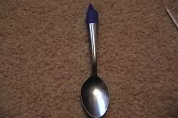 Ahora, deslice el puño sobre el extremo de la cuchara y llevarla hacia abajo, sobre la cuchara y la parte superior de la pluma. Ver la tercera y cuarta foto abajo. Tenga cuidado al deslizar el puño sobre la cuchara y la parte superior de la pluma. Mucho estiramiento hará que agarre ripear y quedar inutilizable.