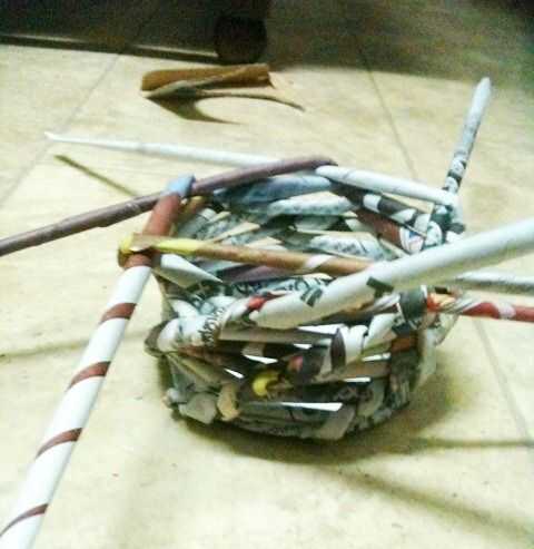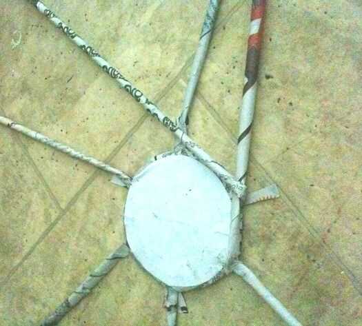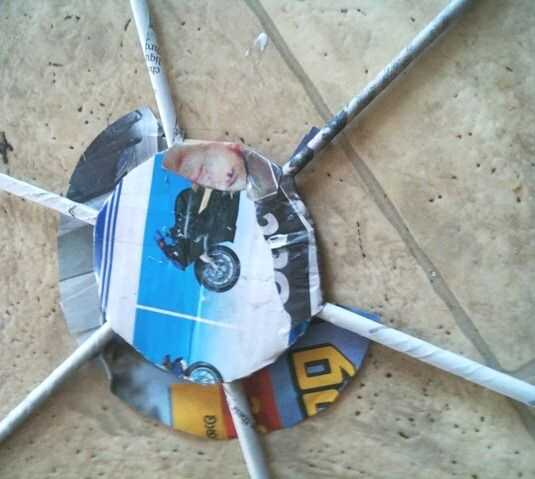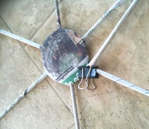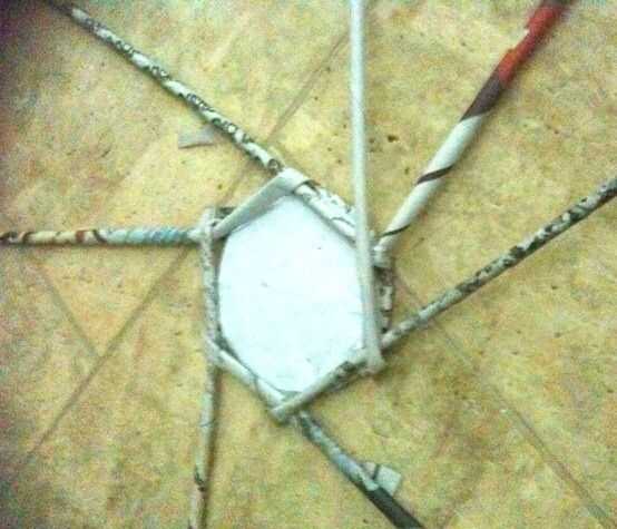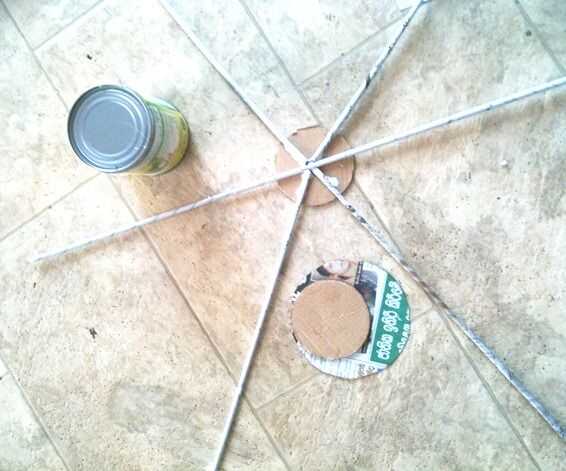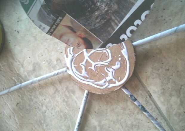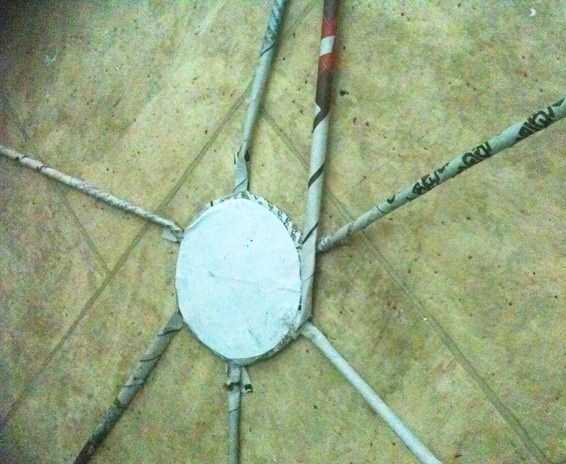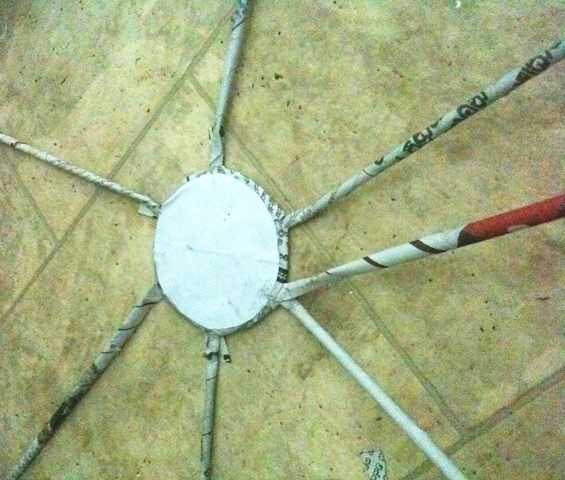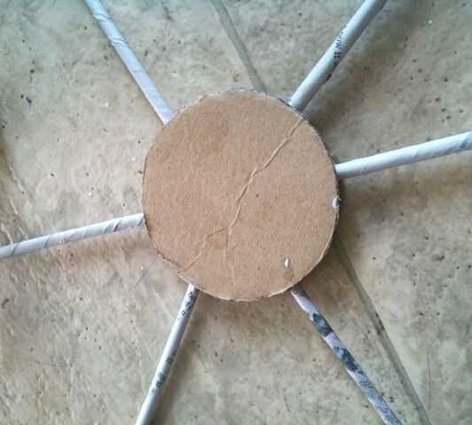 pegamento barras 6 en un círculo como imagen... pegamento del otro círculo en las varillas... pegue el círculo de papel más grande en la cartulina y voltear
