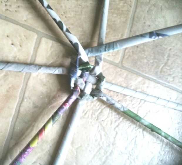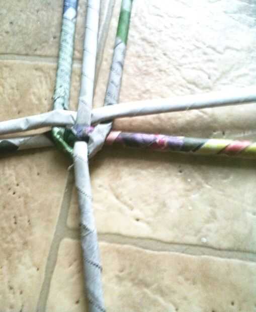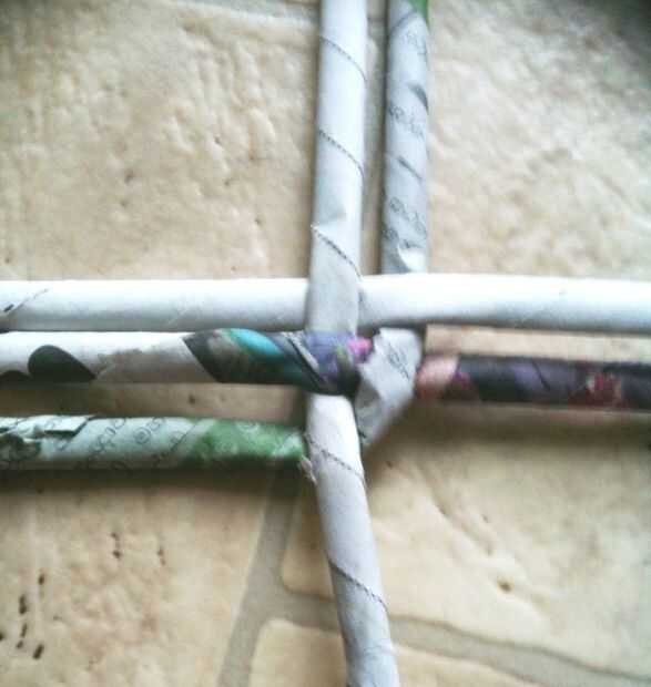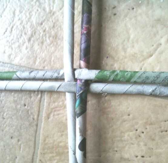 Tomar 4 varillas y tejerlo... luego tome una de las barras y vaya debajo y sobre el resto de las barras de... como sólo una varilla... solo la armadura!