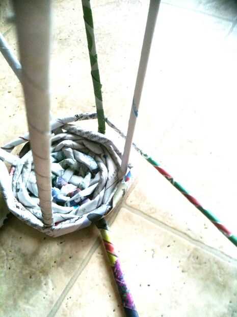 Una vez que usted viene al tamaño que quieras... doblar la varilla larga en forma de bucle y meter entre los tejidos... vaya derecha abajo y van hacia el interior. luego tejer hacia arriba... cortar exceso y pegamento... verás lo que significa en el próximo par de fotos :-)