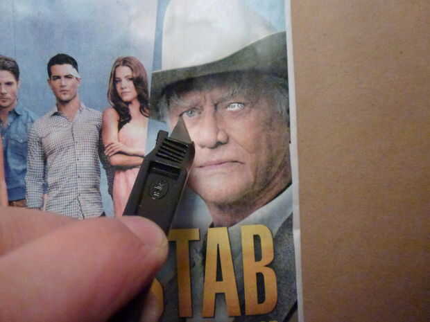 Este paso es en corte de ojos de la gente y del animal en el periódico. Seleccionar la imagen que tiene una cabeza bastante grande (quieres hacer agujeros lo suficientemente grandes como para ver a través). A continuación, recoger el cuchillo de la manía y corte justo dentro del ojo de la persona, reducción de la pupila y el iris. No necesita demasiado cinta de plástico transparente porque los ojos son más pequeños y no son transparentes. Cuando termine de cortar, recortar los ojos de la víctima y formó un agujero de diamante redondo.