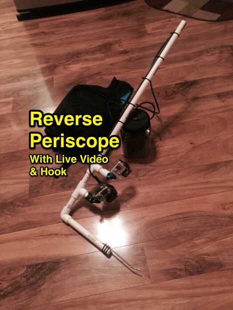 un poste de PVC con 2 cámaras GoPro unida, 1 que tiene un video en vivo a la superficie. Su batería todos para portabilidad. También he añadido un gancho para recuperar el tesoro encontrado sobre el fondo del mar.