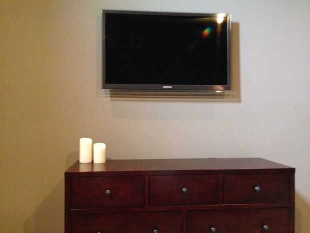 Ok, no entrar en detalle aquí. Cuelgue su televisor si usted no lo ha hecho. Ocultar los cables a ras de suelo. Corrí 2 cables HDMI más energía a través de la pared y cerca de la placa base. Era un kit de $20 que hizo todo el trabajo eléctrico UL fiar y hasta el código. Lo tuyo lo que quieras.