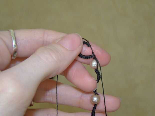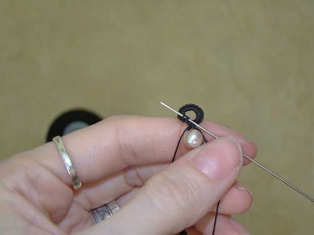 Si está utilizando otros tamaños de perlas, simplemente ajuste el número de puntadas del lazo para que se ajuste cómodamente sobre las perlas.