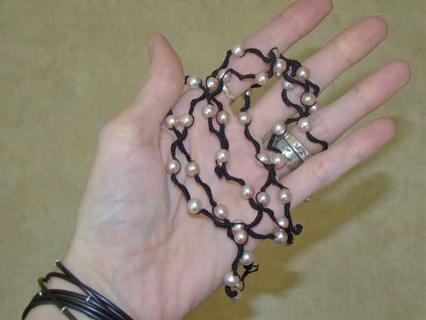 Collar terminado se ve muy usado largo o doblado. Por supuesto puede utilizar esta técnica para hacer cortocircuito collares, pulseras y tobilleras. Dar las perlas una nueva vida.